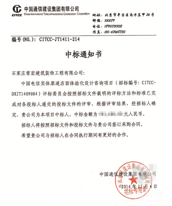 常宏裝飾 中標“中國電信實體渠道店面體驗化設計咨詢項目”