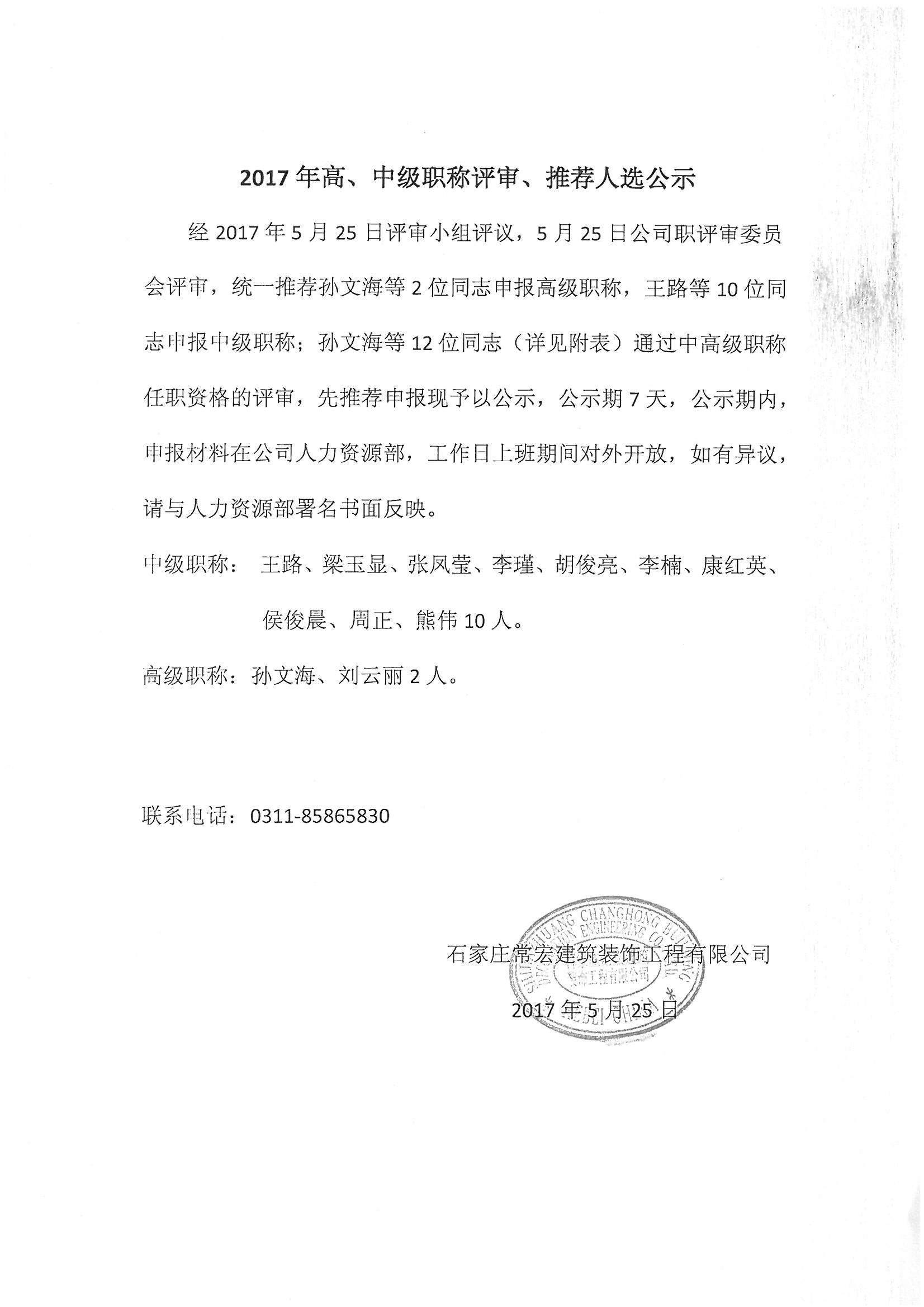 首頁> 關(guān)于我們> 公司新聞> 常宏裝飾高中級(jí)職稱公示文件