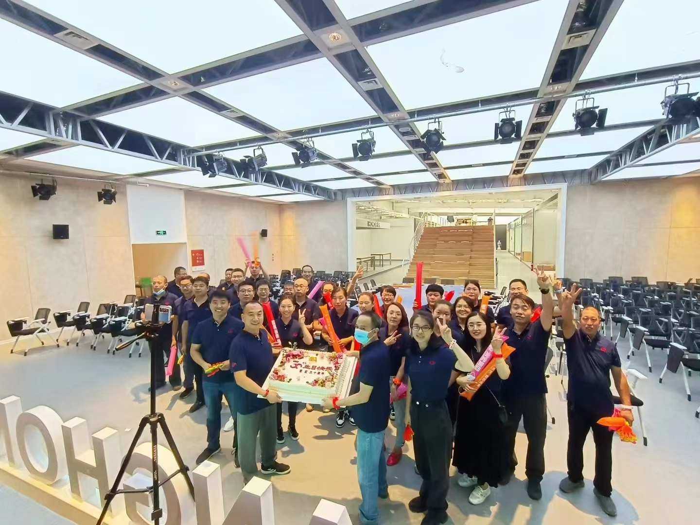 因為突如其來的疫情,我們原本在籌備過程中的線下活動被緊急叫停,沒有靜默的常宏正定產(chǎn)業(yè)園還在堅持生產(chǎn),成為了我們唯一的線下活動會場。能夠相聚的常宏人在產(chǎn)業(yè)園展示中心共同參加線上慶典活動,伴隨著美味的蛋糕和生日歌為常宏送上最美好的生日祝福。
