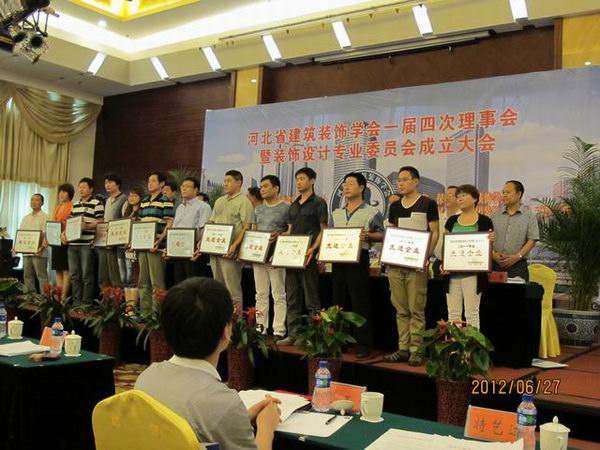 2012年6月27日河北省建筑裝飾學(xué)會(huì)組織召開(kāi)第一屆第四次理事會(huì)暨裝飾設(shè)計(jì)專(zhuān)業(yè)委員會(huì)成立大會(huì),會(huì)上對(duì)榮獲2011年河北省建筑裝飾行業(yè)先進(jìn)企業(yè)、優(yōu)秀企業(yè)家進(jìn)行了表彰,常宏裝飾也又一次被評(píng)為2011年河北省建筑裝飾行業(yè)先進(jìn)企業(yè),王躍總經(jīng)理被評(píng)為優(yōu)秀企業(yè)家。省學(xué)會(huì)會(huì)長(zhǎng)、秘書(shū)長(zhǎng)及各副會(huì)長(zhǎng)單位領(lǐng)導(dǎo)為獲獎(jiǎng)單位進(jìn)行了頒獎(jiǎng)。