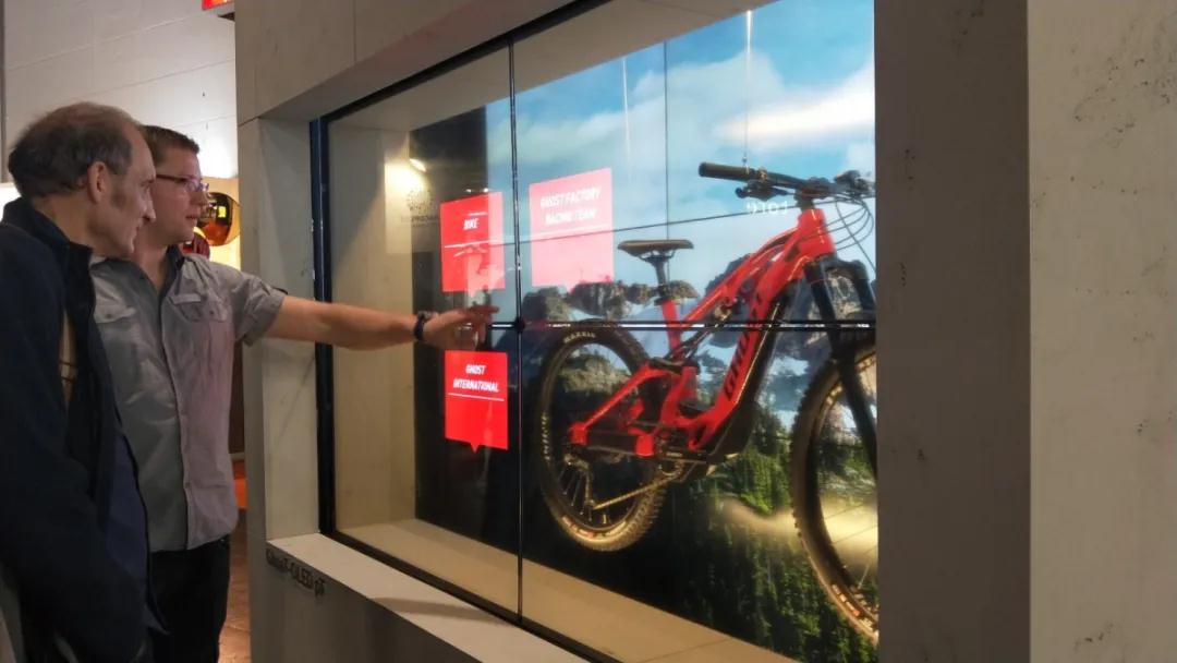 屏幕在零售店面設(shè)計(jì)中占據(jù)著舉足輕重的地位,是視覺傳播的主要陣地。LG品牌占據(jù)著主要的市場。鏡面屏、透明屏以及他們組成的拼接屏越來越得到廣泛的應(yīng)用。由四塊透明屏組成的櫥窗,兼具觸摸功能。當(dāng)人在距離兩米以上時(shí)顯示廣告(不透明),兩米以內(nèi)則變?yōu)橥该黠@示里面的自行車,同時(shí)觸摸上面的顏色模塊展示產(chǎn)品的各項(xiàng)信息數(shù)據(jù)。