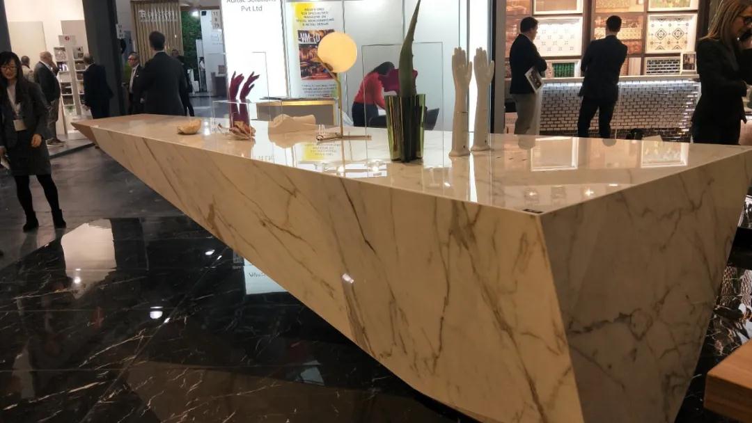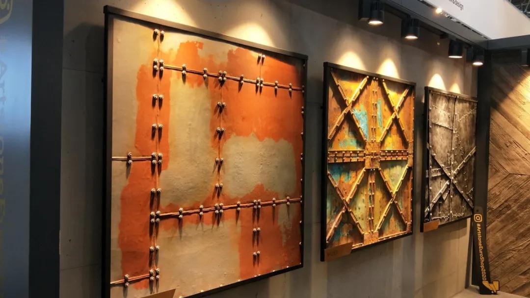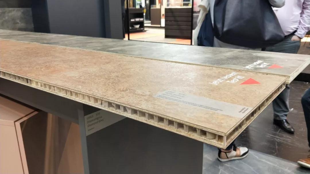 材 料 是科學(xué)技術(shù)發(fā)展的結(jié)果,同時(shí)材料的應(yīng)用也會(huì)帶來新技術(shù)的變革。本次展會(huì)的材料展區(qū)整體呈現(xiàn)著輕量化、復(fù)合化、高仿真的特點(diǎn)。這些特點(diǎn)主要體現(xiàn)在各類型高仿真的陶瓷薄板(仿石紋理、仿木紋理)、仿鏡面薄膜、殼體結(jié)構(gòu)復(fù)合板、仿真石材等。