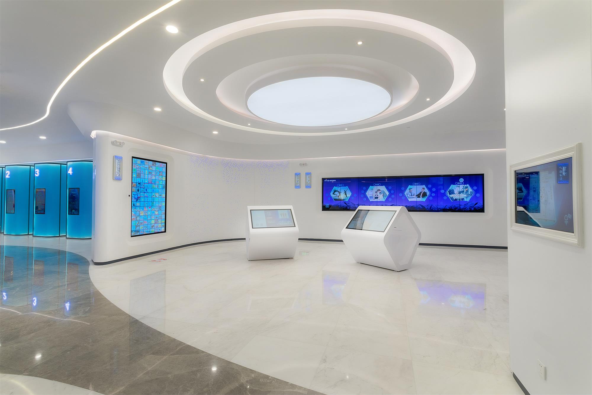 廳堂內明亮的光線,流動的波紋和多變的色彩,傳遞著穿越時空的設計語言,寓意時光的流逝、演變和發(fā)展;燈光和光帶如陽光一般從建筑的外立面延伸到室內空間,與設計主題相呼應;智能區(qū)屏幕上疾馳而過的復興號,講述著石家莊——火車拉來的城市的發(fā)展故事。冀州古鼎、定州瓷器、蔚縣剪紙等擺件及飾品,描述著“京畿福地,大美燕趙”的宏偉畫卷。